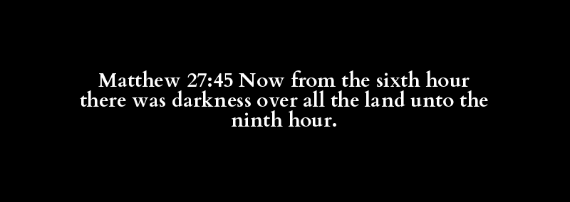 Matthew 27:45 Now from the sixth hour there was darkness over all the land unto the ninth hour.