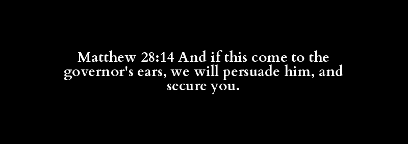 Matthew 28:14 And if this come to the governor's ears, we will persuade him, and secure you.