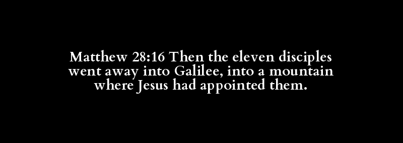 Matthew 28:16 Then the eleven disciples went away into Galilee, into a mountain where Jesus had appointed them.