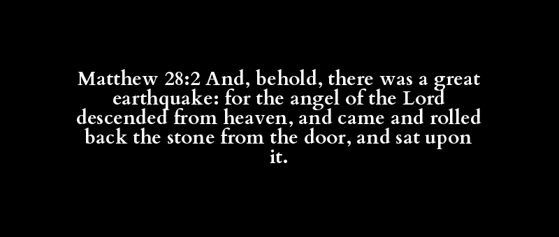 Matthew 28:2 And, behold, there was a great earthquake: for the angel of the Lord descended from heaven, and came and rolled back the stone from the door, and sat upon it.