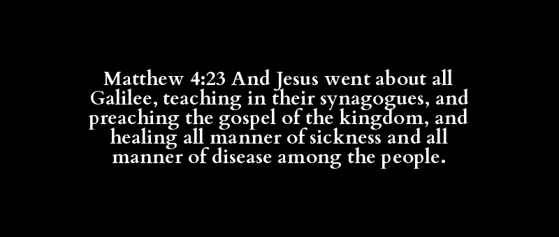 Matthew 4:23 And Jesus went about all Galilee, teaching in their synagogues, and preaching the gospel of the kingdom, and healing all manner of sickness and all manner of disease among the people.