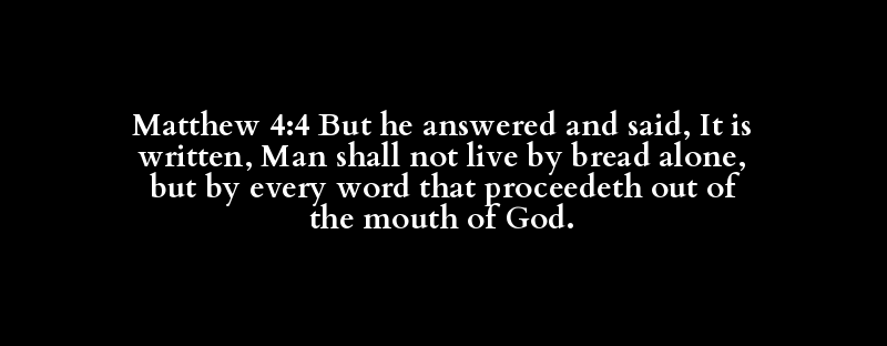 Matthew 4:4 But he answered and said, It is written, Man shall not live by bread alone, but by every word that proceedeth out of the mouth of God.