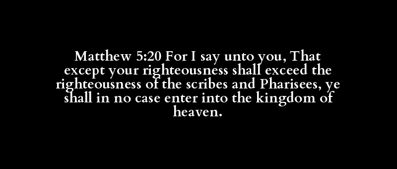 Matthew 5:20 For I say unto you, That except your righteousness shall exceed the righteousness of the scribes and Pharisees, ye shall in no case enter into the kingdom of heaven.