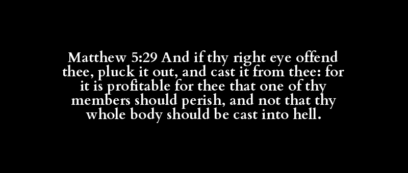 Matthew 5:29 And if thy right eye offend thee, pluck it out, and cast it from thee: for it is profitable for thee that one of thy members should perish, and not that thy whole body should be cast into hell.