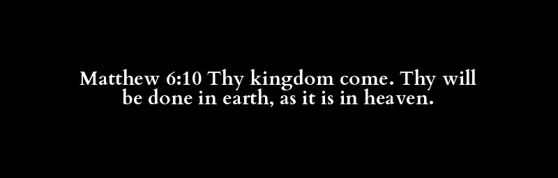 Matthew 6:10 Thy kingdom come. Thy will be done in earth, as it is in heaven.