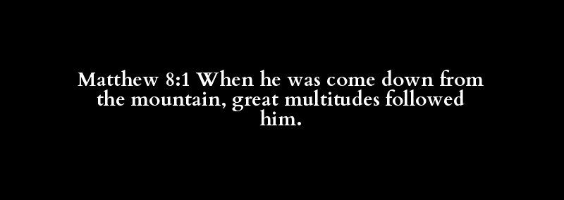Matthew 8:1 When he was come down from the mountain, great multitudes followed him.