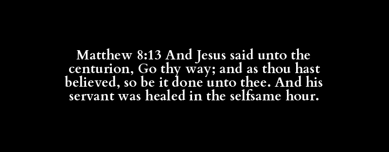 Matthew 8:13 And Jesus said unto the centurion, Go thy way; and as thou hast believed, so be it done unto thee. And his servant was healed in the selfsame hour.