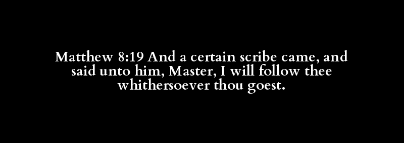 Matthew 8:19 And a certain scribe came, and said unto him, Master, I will follow thee whithersoever thou goest.