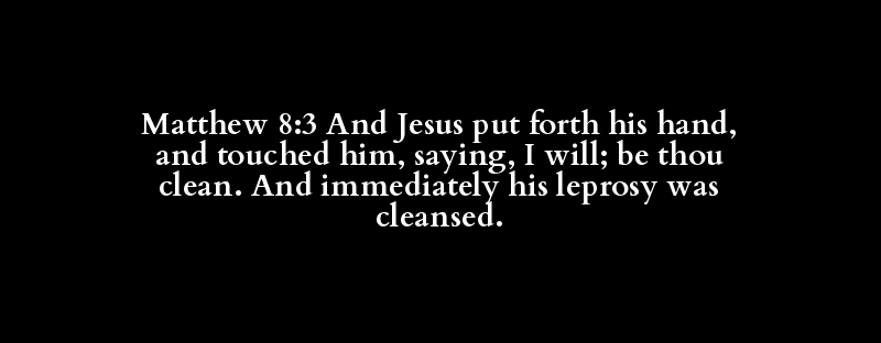 Matthew 8:3 And Jesus put forth his hand, and touched him, saying, I will; be thou clean. And immediately his leprosy was cleansed.