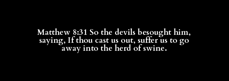 Matthew 8:31 So the devils besought him, saying, If thou cast us out, suffer us to go away into the herd of swine.