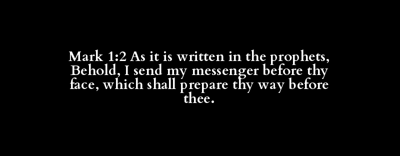 Mark 1:2 As it is written in the prophets, Behold, I send my messenger before thy face, which shall prepare thy way before thee.