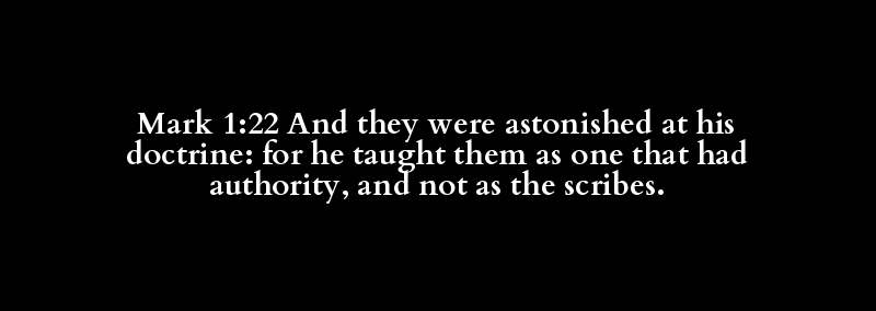 Mark 1:22 And they were astonished at his doctrine: for he taught them as one that had authority, and not as the scribes.