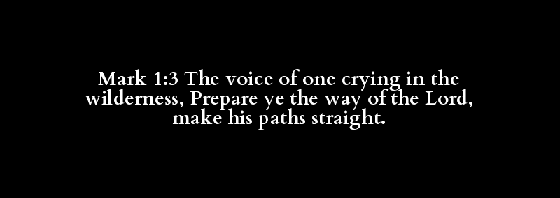 Mark 1:3 The voice of one crying in the wilderness, Prepare ye the way of the Lord, make his paths straight.