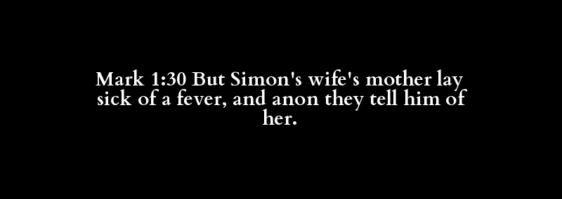 Mark 1:30 But Simon's wife's mother lay sick of a fever, and anon they tell him of her.