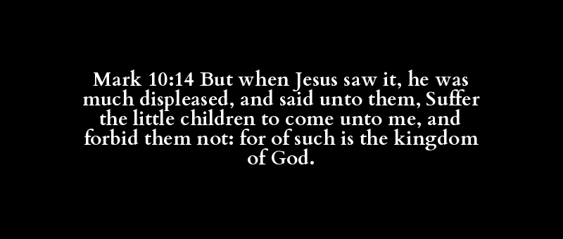 Mark 10:14 But when Jesus saw it, he was much displeased, and said unto them, Suffer the little children to come unto me, and forbid them not: for of such is the kingdom of God.