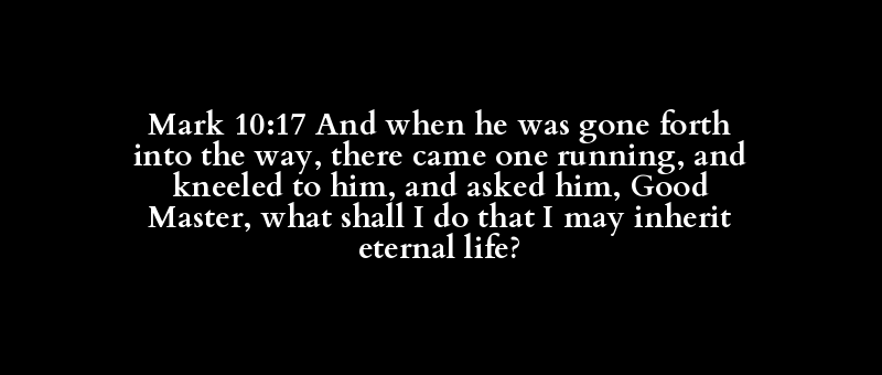 Mark 10:17 And when he was gone forth into the way, there came one running, and kneeled to him, and asked him, Good Master, what shall I do that I may inherit eternal life?