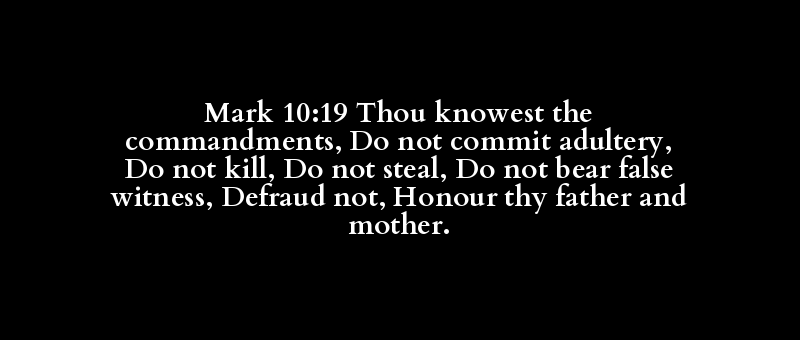 Mark 10:19 Thou knowest the commandments, Do not commit adultery, Do not kill, Do not steal, Do not bear false witness, Defraud not, Honour thy father and mother.