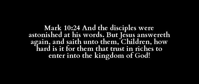 Mark 10:24 And the disciples were astonished at his words. But Jesus answereth again, and saith unto them, Children, how hard is it for them that trust in riches to enter into the kingdom of God!
