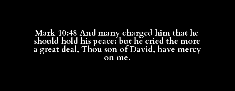 Mark 10:48 And many charged him that he should hold his peace: but he cried the more a great deal, Thou son of David, have mercy on me.
