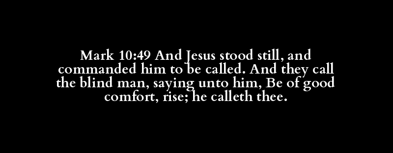 Mark 10:49 And Jesus stood still, and commanded him to be called. And they call the blind man, saying unto him, Be of good comfort, rise; he calleth thee.
