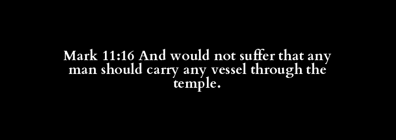 Mark 11:16 And would not suffer that any man should carry any vessel through the temple.