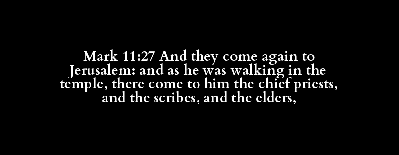 Mark 11:27 And they come again to Jerusalem: and as he was walking in the temple, there come to him the chief priests, and the scribes, and the elders,