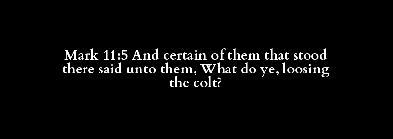 Mark 11:5 And certain of them that stood there said unto them, What do ye, loosing the colt?