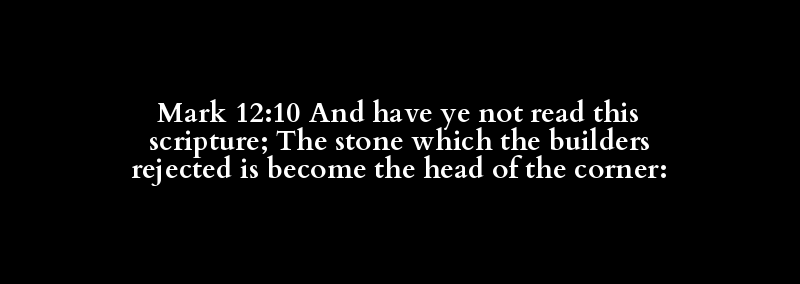 Mark 12:10 And have ye not read this scripture; The stone which the builders rejected is become the head of the corner: