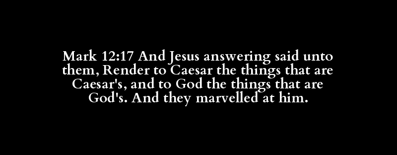 Mark 12:17 And Jesus answering said unto them, Render to Caesar the things that are Caesar's, and to God the things that are God's. And they marvelled at him.