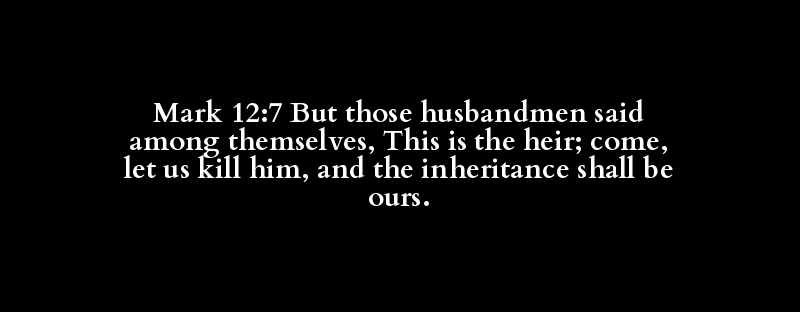 Mark 12:7 But those husbandmen said among themselves, This is the heir; come, let us kill him, and the inheritance shall be ours.