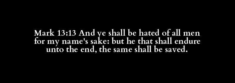 Mark 13:13 And ye shall be hated of all men for my name's sake: but he that shall endure unto the end, the same shall be saved.
