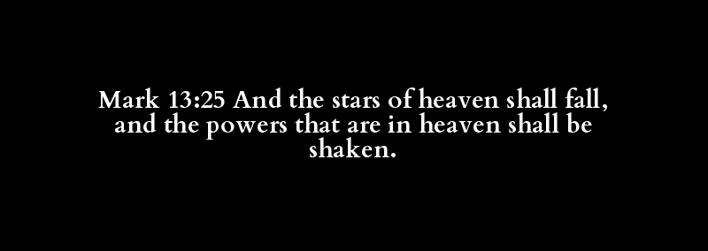 Mark 13:25 And the stars of heaven shall fall, and the powers that are in heaven shall be shaken.