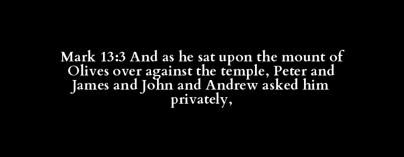 Mark 13:3 And as he sat upon the mount of Olives over against the temple, Peter and James and John and Andrew asked him privately,