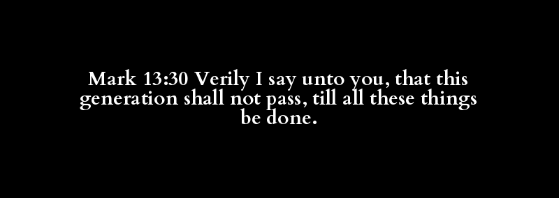 Mark 13:30 Verily I say unto you, that this generation shall not pass, till all these things be done.