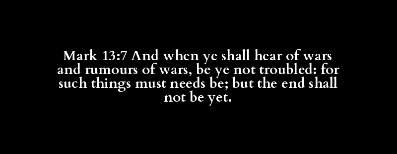 Mark 13:7 And when ye shall hear of wars and rumours of wars, be ye not troubled: for such things must needs be; but the end shall not be yet.