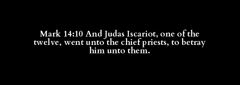 Mark 14:10 And Judas Iscariot, one of the twelve, went unto the chief priests, to betray him unto them.