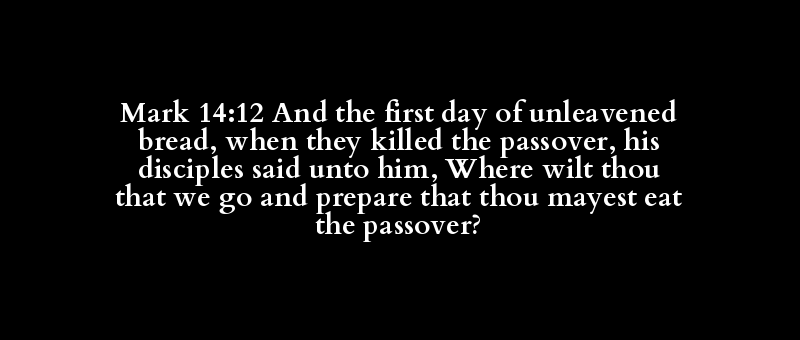 Mark 14:12 And the first day of unleavened bread, when they killed the passover, his disciples said unto him, Where wilt thou that we go and prepare that thou mayest eat the passover?
