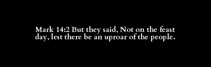 Mark 14:2 But they said, Not on the feast day, lest there be an uproar of the people.