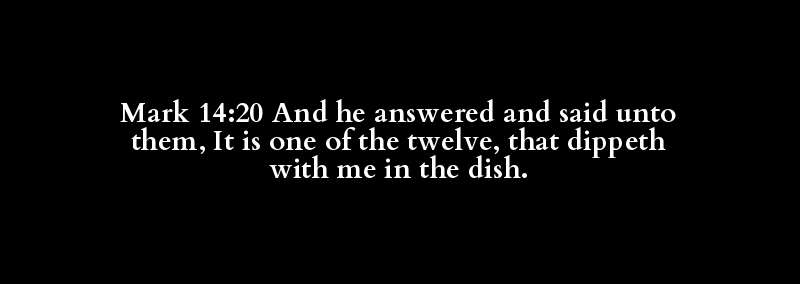 Mark 14:20 And he answered and said unto them, It is one of the twelve, that dippeth with me in the dish.
