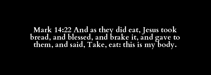 Mark 14:22 And as they did eat, Jesus took bread, and blessed, and brake it, and gave to them, and said, Take, eat: this is my body.