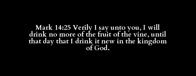 Mark 14:25 Verily I say unto you, I will drink no more of the fruit of the vine, until that day that I drink it new in the kingdom of God.