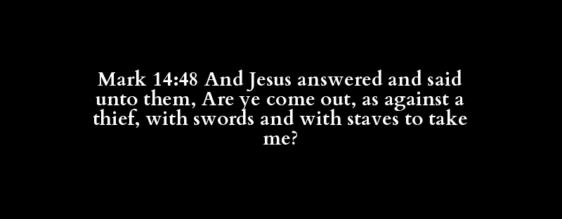 Mark 14:48 And Jesus answered and said unto them, Are ye come out, as against a thief, with swords and with staves to take me?