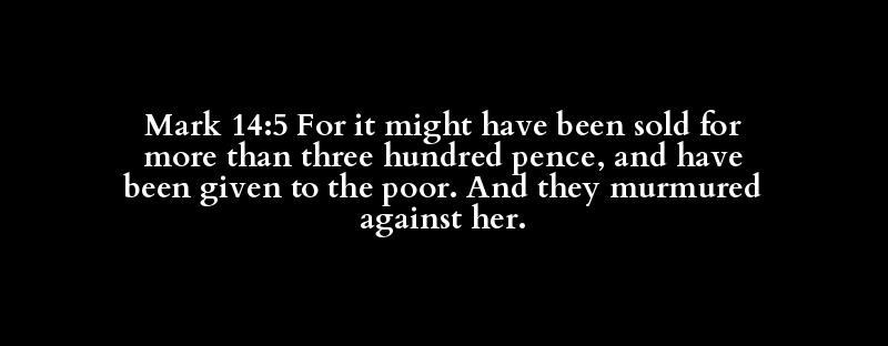 Mark 14:5 For it might have been sold for more than three hundred pence, and have been given to the poor. And they murmured against her.