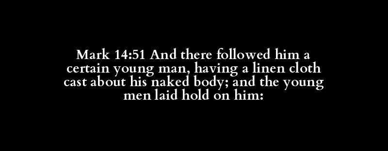 Mark 14:51 And there followed him a certain young man, having a linen cloth cast about his naked body; and the young men laid hold on him: