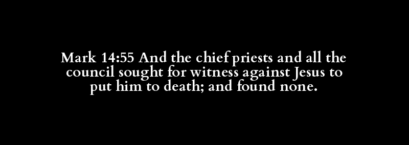 Mark 14:55 And the chief priests and all the council sought for witness against Jesus to put him to death; and found none.
