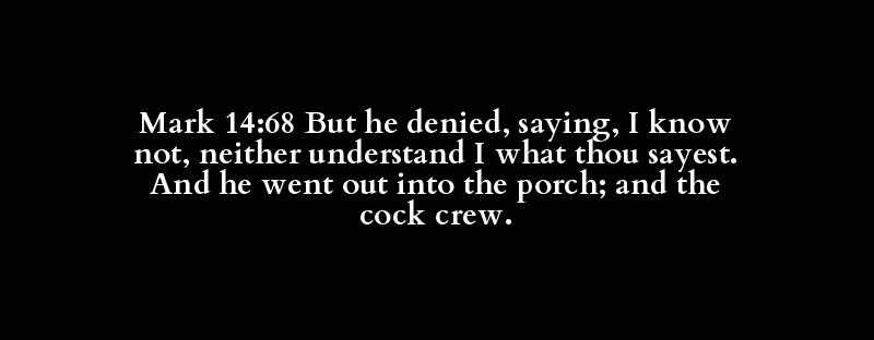 Mark 14:68 But he denied, saying, I know not, neither understand I what thou sayest. And he went out into the porch; and the cock crew.