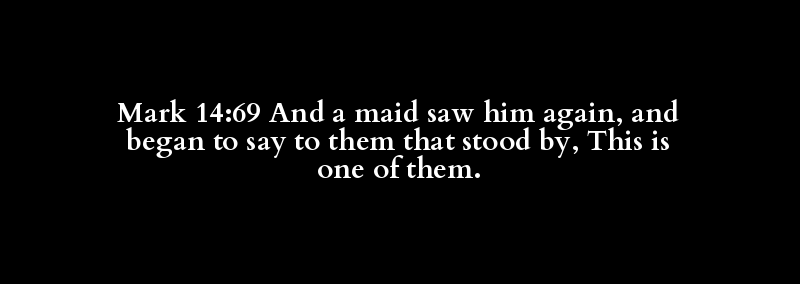 Mark 14:69 And a maid saw him again, and began to say to them that stood by, This is one of them.