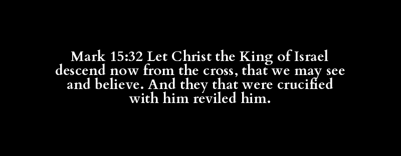 | καταβαίνω | Χριστός | βασιλεύς | Ἰσραήλ | καταβαίνω | νῦν | ἀπό | σταυρός | ἵνα | εἴδω | καί | πιστεύω | καί | συσταυρόω | αὐτός | ὀνειδίζω | αὐτός |