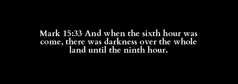 Mark 15:33 And when the sixth hour was come, there was darkness over the whole land until the ninth hour.