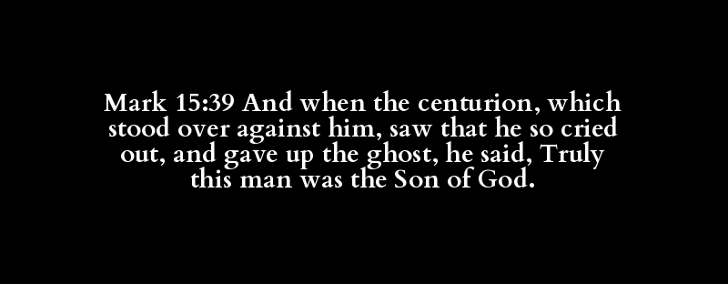Mark 15:39 And when the centurion, which stood over against him, saw that he so cried out, and gave up the ghost, he said, Truly this man was the Son of God.